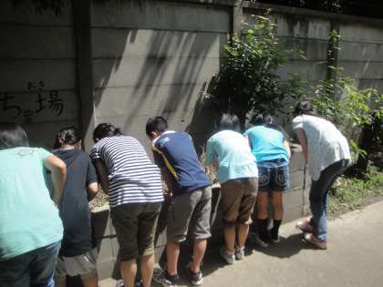 植物を食べている小さな生き物について調べるために,ダンゴムシを探して採集しました。