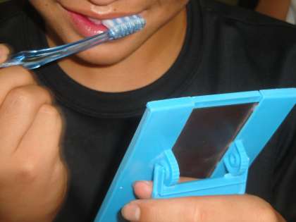 教わったみがき方を使い,再度歯みがきをしました。