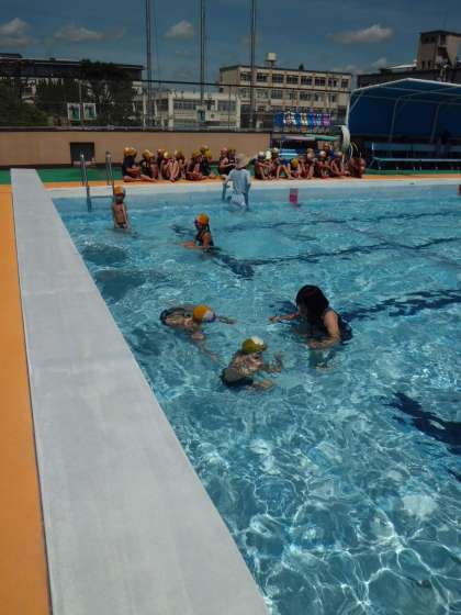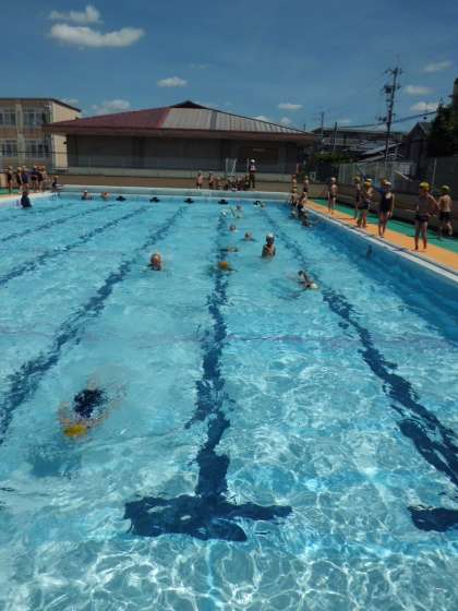 3年の水泳学習も学習の進め方もしっかり理解し,日を重ねるごとに,どの児童にも成果が見えてきました。1もぐる,浮く。2浮く,進む。3いろいろな泳ぎ方で長い距離に挑戦する。自分のめあてに向かって努力しながら学習しています。
