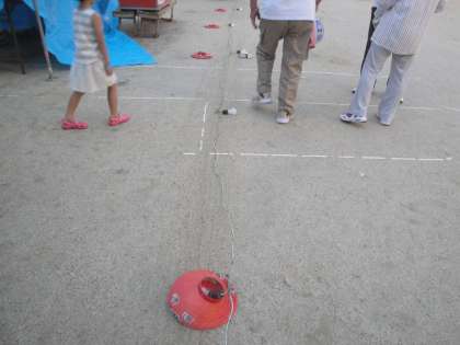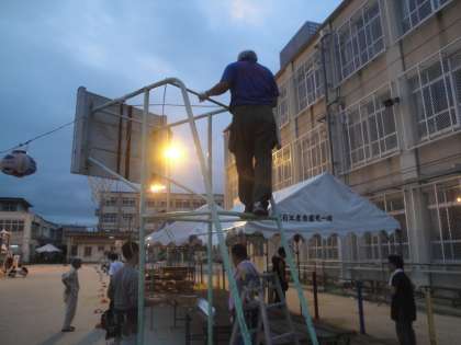 テントを立て,提灯を次々と点灯していきました。