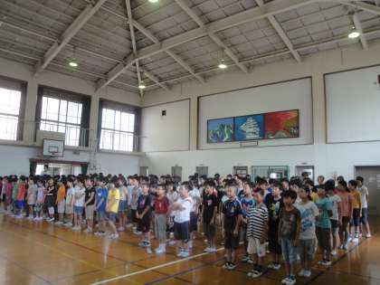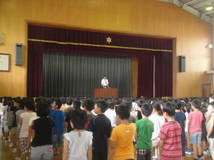 夏休み前最後の朝会で,校長先生から3つのお話がありました。