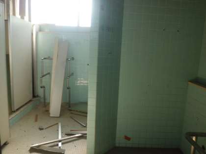 西校舎のトイレ改修工事が始まっています。