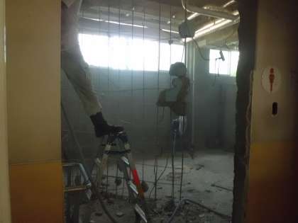 全面的に壁や天井が取り壊されています。