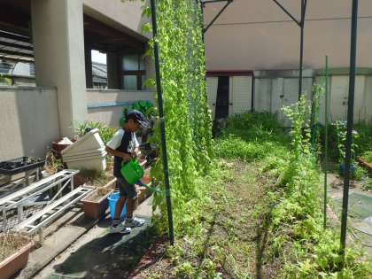 今日も朝から猛暑の中,しっかりと水やりをしています。