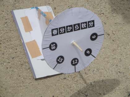 作り終えた日時計を北向きに置くと,しっかりと時刻を指していました。