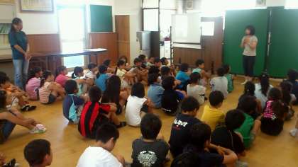 子ども達はお知らせを聞いた後、みさきの家のキャンプファイヤーで行ったレクリエーションをして楽しみました。