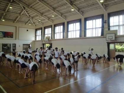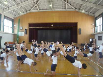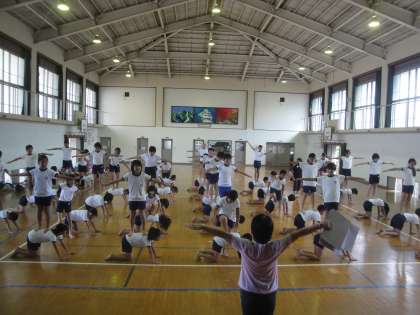 8月1日(水)夏休み中ですが,多くの子どもたちが登校してくれました。ペアになり,2人組で組体操の練習をしました。