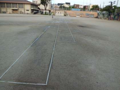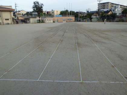 9月22日(土)の運動会に備えて,新しい50mコースと100mのトラックができあがりました。