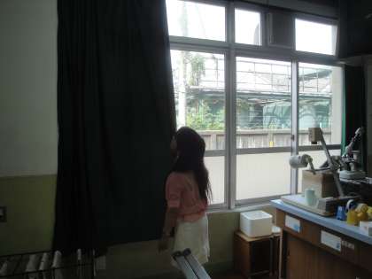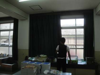 夏休み中,PTAの保護者の皆様にクリーニングしていただいたカーテンを取り付けました。部屋の空気が変わった気がします。