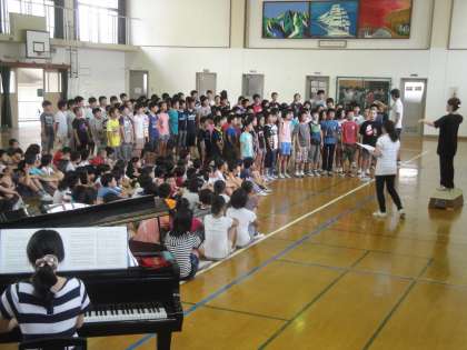 ソプラノ・アルトとパートごとに歌い,全員で練習しました。