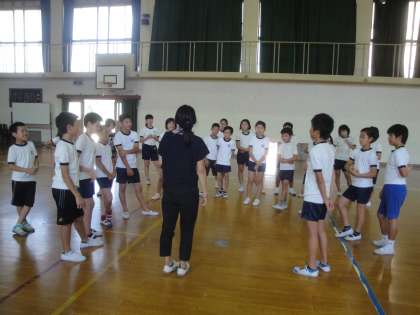 白組は,体育館でエールやコールの練習をしました。