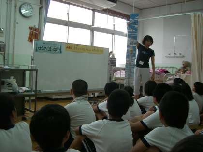 もっと姿勢を良くするためには,骨のまわりの筋肉を鍛えることが大切であることを話しました。ではどうすればいいの?と子どもたちに聞くと,「外で遊ぶ」「運動会の練習をがんばる」「走る」「すもうする」などと答えてくれました。成長中の子どもたちのが元気に過ごせるように,ご家庭でのご協力をお願いします。