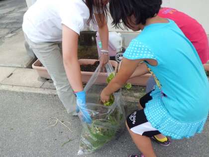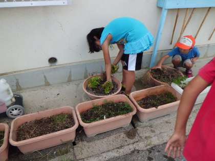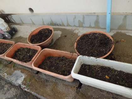 プランターの雑草を抜いて,耕し,次の準備をしました。