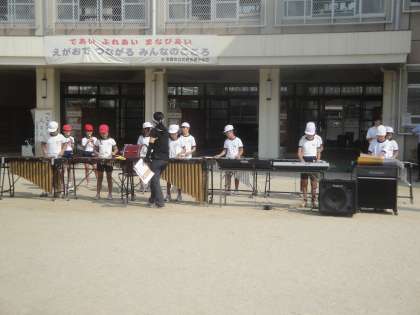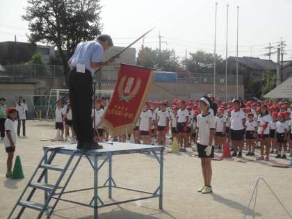 優勝旗返還や運動会の歌「ゴー・ゴー・ゴー」の練習をしました。