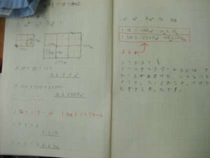 9月14日、算数の面積の勉強ではアール、ヘクタールの勉強をしました。