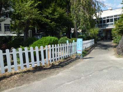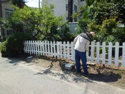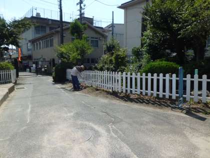 運動会を間近に控え,池に沿って「垣根」を新しくしています。間もなく完成します。