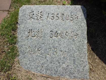 昭和43年度の卒業記念です。そこには,東経135度45分,北緯34度56分,海抜26mと記されています。