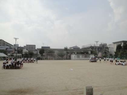運動場で隊形・立ち位置を確認しながら通し練習をしました。