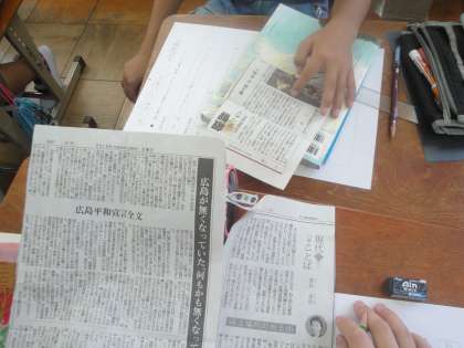 意見文を書くために,「平和」についての仮の要旨を書きました。