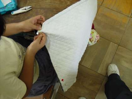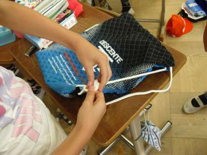 家庭科の授業で作っているナップザックが,だんだんと完成に近づいてきました。自分で作ったナップザックを花背山の家で使うのが楽しみです♪