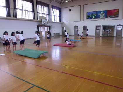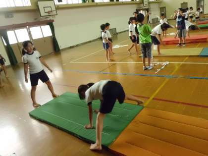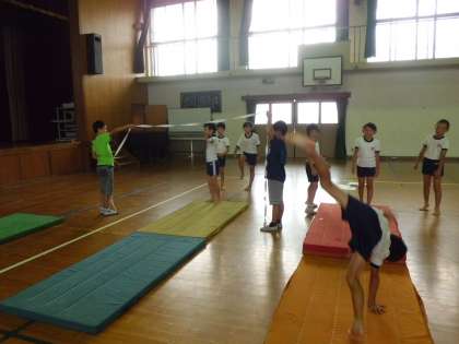 自分のめあてをしっかりもって取り組んでいます。少しずつ回れる技が増えてきました。