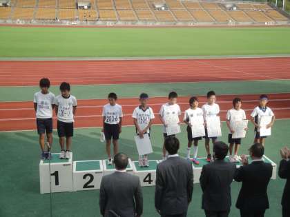 男子50mハードル走で本校児童が第1位という,素晴らしい成績を収めることができました。