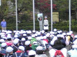 新町,松陽三校と合同で朝のつどいをしました。