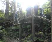 冒険の森でフィールドアスレチックを楽しんでいます。