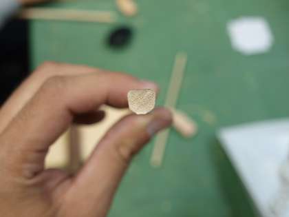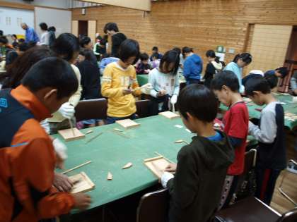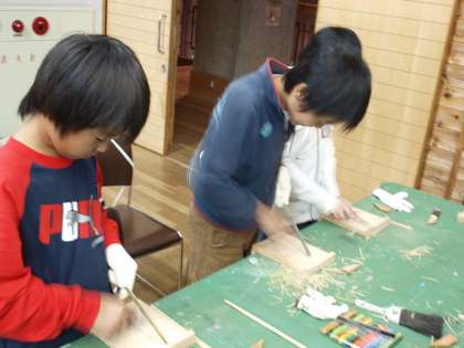野外活動の時に使う竹箸を自分の手で作っています。小刀で削り,やすりでやすって完成です。