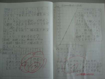表,式,グラフを使って比例していることを説明しました。
