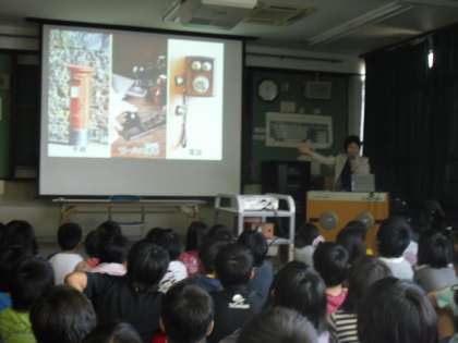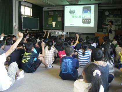 電話会社の方からケータイの危険性やトラブルはもとより、ケータイの歴史など、さまざまなことを教えてもらいました。