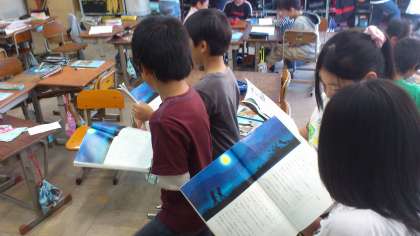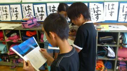 ごんぎつねも中盤に入り、4年2組では班で役わり振り、芝居風に場面を読んでいます。