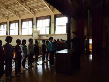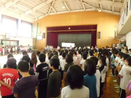 本日の児童朝会で,後期学級代表の認証式が行われました。みんなのために精一杯やってくれることを期待しています。