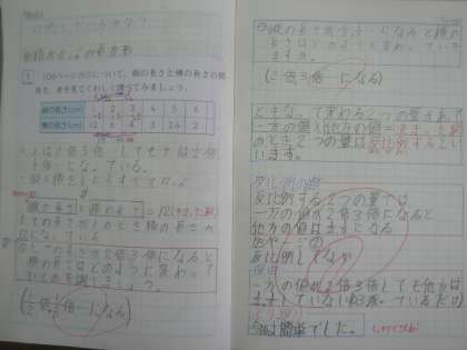 面積が一定の長方形の縦と横の長さの変化を考察し,反比例の定義と性質を理解しました。