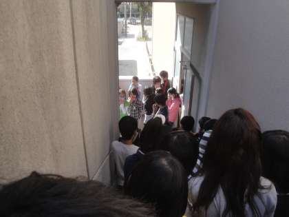 今回は,雨天を想定して避難訓練を行いました。