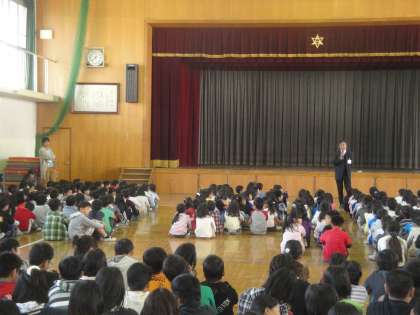 体育館に素早く集まり,担当先生や校長先生のお話を聞き,各教室でふり返りました。