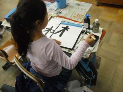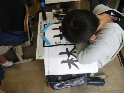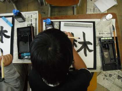 書写の時間では「林」を書きました。大きさ、はらいなどに注意して、一画一画丁寧に書きました。
