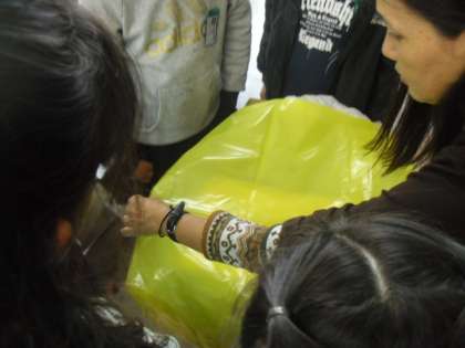 今日は服につけるアイヌ模様を自分たちで考えたり、役に必要な道具作りをしました。