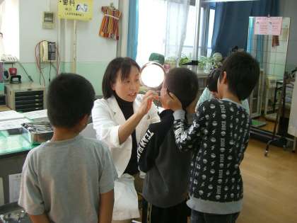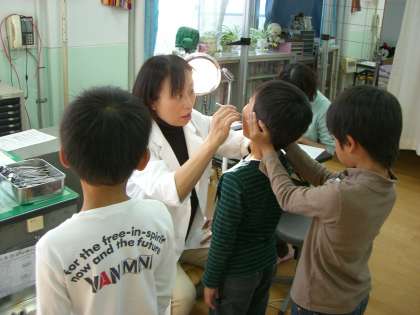 10月末から11月にかけて,学校歯科医の北村先生に歯の様子を診ていただきました。短時間にたくさんの子どもたちを診てくださるので,次の順番の子どもは前の子どもの頭を支えるお手伝いもしてくれます。学校の検診はすべてスクリーニング検査と言って「疑わしい場合は治療をすすめる」という方式で行っていますので,ご理解をお願いします。