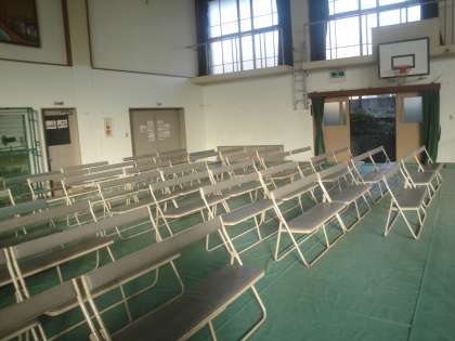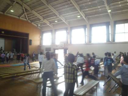 6時間目に,6年生児童と教職員で前日準備を行いました。