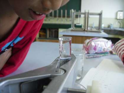子どもたちは予想をもとに、実験を行っていました。