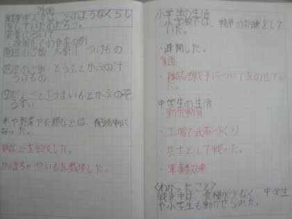 戦争中の人々の生活について,調べたことをもとに話し合いました。