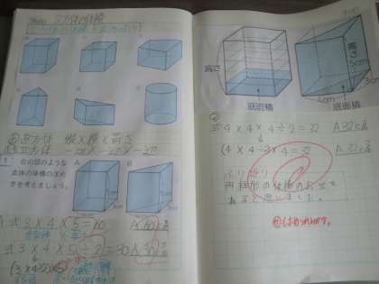 角柱や円柱の体積について学習することを把握し,角柱の体積の求め方を考えました。