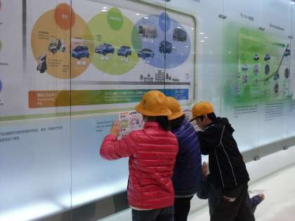 トヨタ会館には,様々な種類の自動車や自動車の歴史の年表,生産工程の映像や模型などたくさんのものが展示されていました。中には「未来のクルマ」をつくるための部品も展示されており,子どもたちはとても興味深そうに眺めていました。