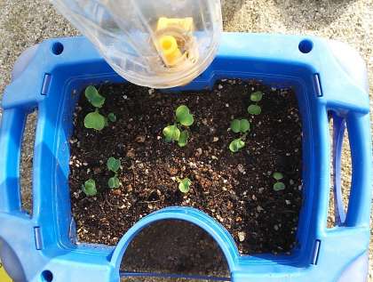 ミニトマトを植えていた植木鉢に,ラディッシュを植えました。