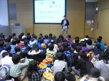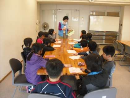 子どもたちは全体でオリエンテーションを行った後グループに分かれ,どうすればゴミを減らす事ができるのか,みんなで話し合いました。