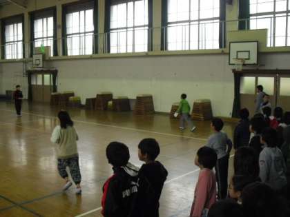 子どもたちは,頑張って遠くに飛ばそうとしていました。