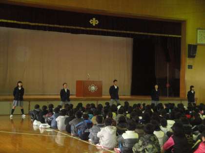 生徒会役員の先輩方から1日の流れや学校の紹介を聞きました。