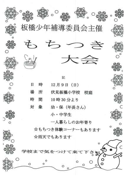 9日(日)はもちつき大会です。お誘い合わせの上,ご参加ください。