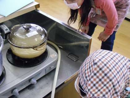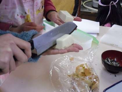 調理実習でごはんとみそ汁を作りました!花背山の家で何度も野外炊事をしましたが,ごはんを鍋で炊いたり,みそ汁の出汁をにぼしから取ったりすることなど,初めて経験することが多かった子どももいたようです。準備から片付けまで,グループで協力しながらおいしいごはんとみそ汁を作ることができました。
